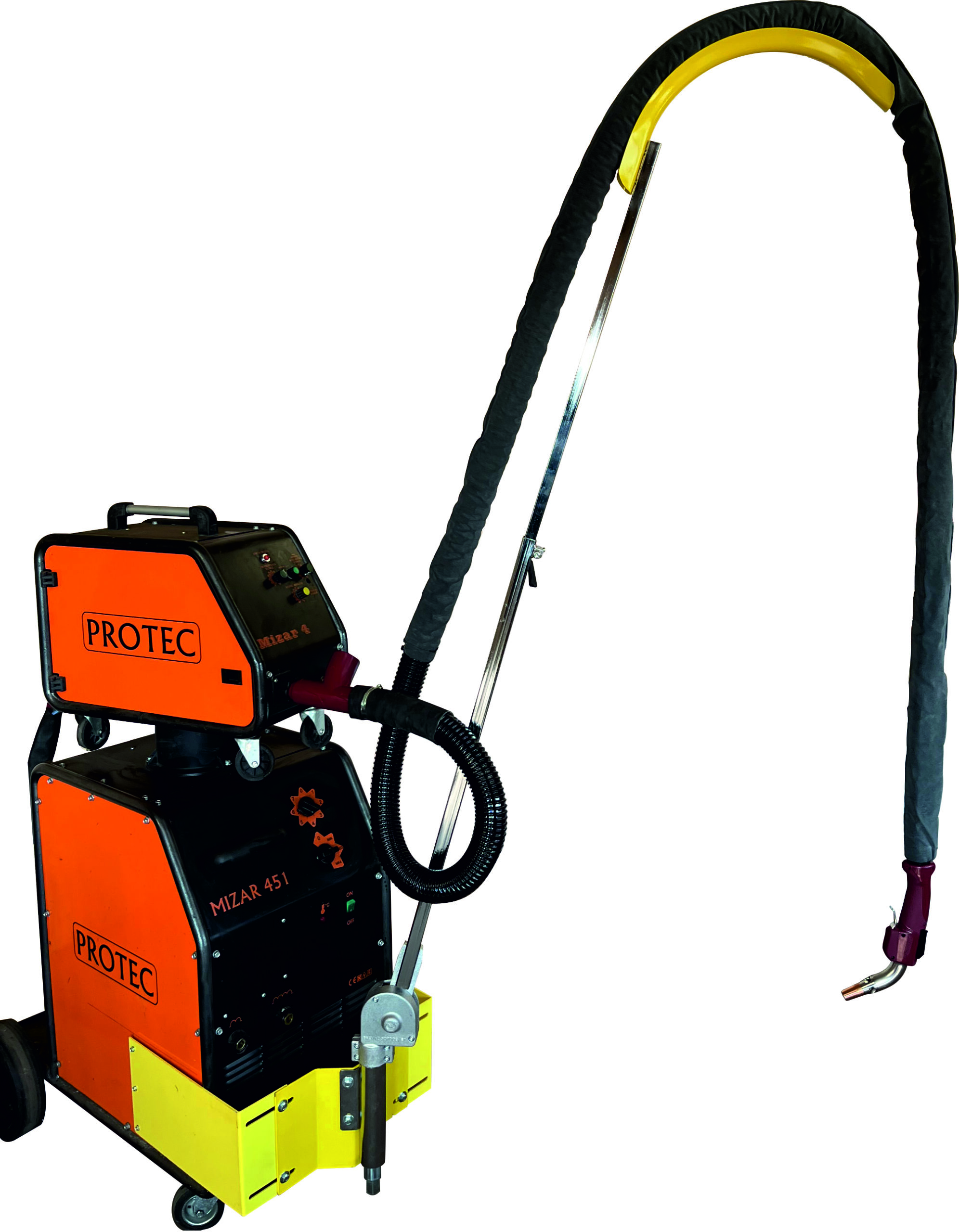 Equipé d’une plateforme pour recevoir le dévidoir et d’un équilibreur de torche.