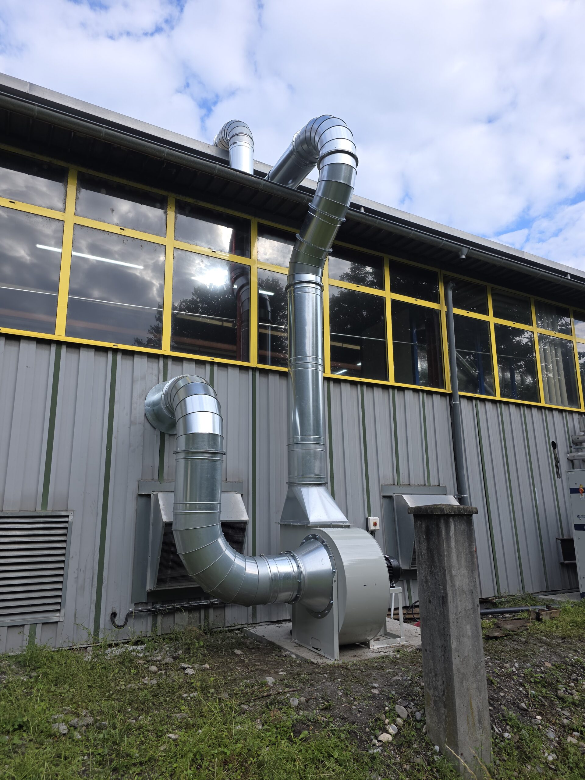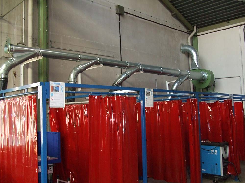 Réseau d’aspiration équipé d’un motoventilateur, avec piquages sur box de travail